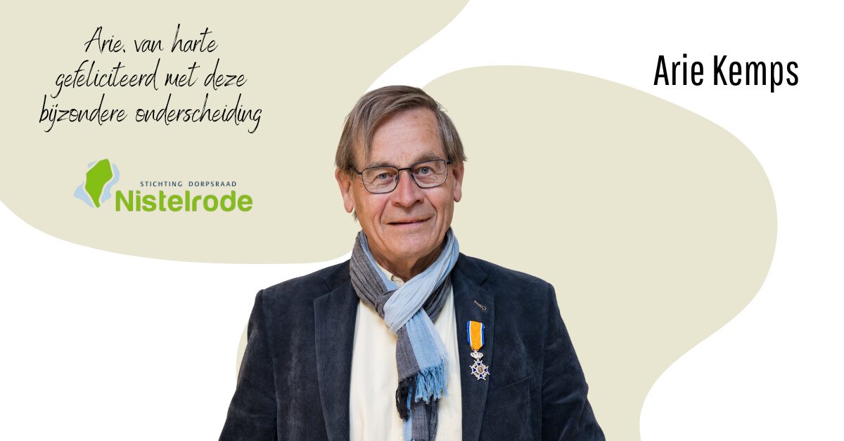 Arie heeft in 2008 het initiatief genomen tot het oprichten van Dorpsraad Nistelrode en is hij benoemd tot voorzitter. Met zijn bestuurlijke kennis en ervaring heeft hij van de Dorpsraad een serieuze gesprekspartner voor de gemeente Bernheze gemaakt. Arie leidt vele projectwerkgroepen voor de verbetering van de leefomgeving in Nistelrode. Voorbeelden hiervan zijn onder ander De Hooge Vorssel, Samen Nistelrode en de mobiliteitsvisie en -plan. Ook heeft Arie Gebruikersraad Maashorst opgericht en is logistiek ondersteuner en begeleider bij De Zonnebloem.
